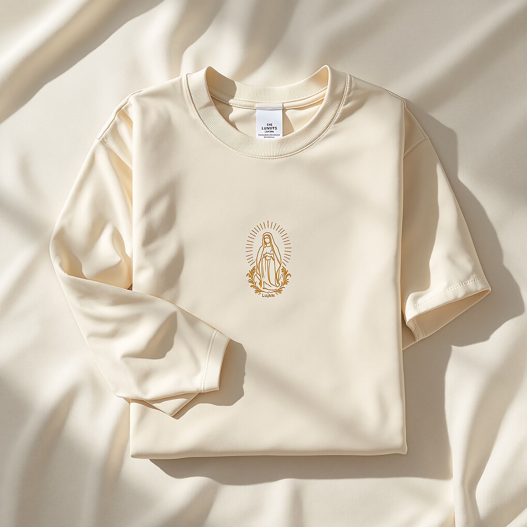 Llevá la presencia de Nuestra Señora de Luján contigo todos los días. Esta remera manga larga con cierre fue pensada para quienes viven la fe con devoción y estilo.